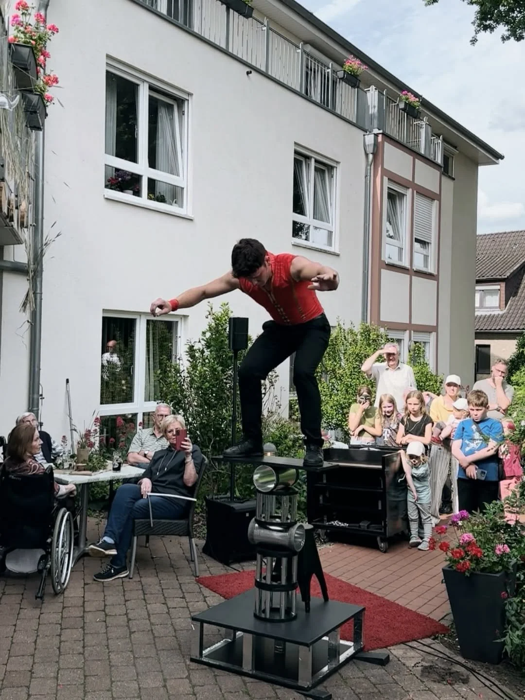 Ich kann mich an jede Bühne, jede Veranstaltung und jedes Publikum anpassen. Jeder Auftritt verwandelt den Raum in einen Ort der Faszination und Freude.